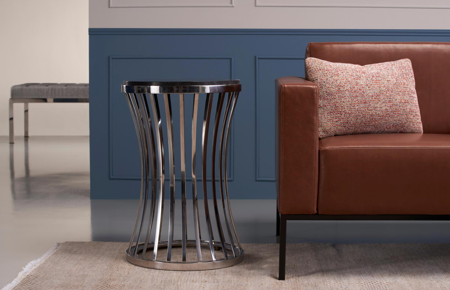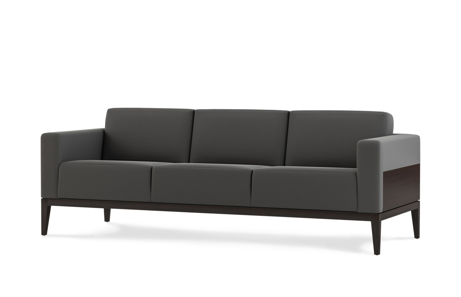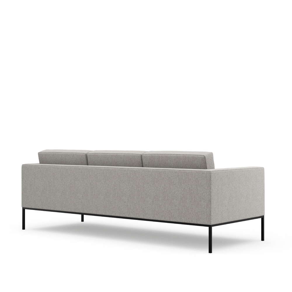 Simplicity of form, clean lines, and a harmonious blending of materials form the distinguishing characteristics of the Alia Sofa. Plush, fixed-cushion upholstery floats above an understated base of metal or wood, offering unsurpassed comfort with a classic visual appeal. Available in a fully upholstered option or with an exquisite wood panel surround.