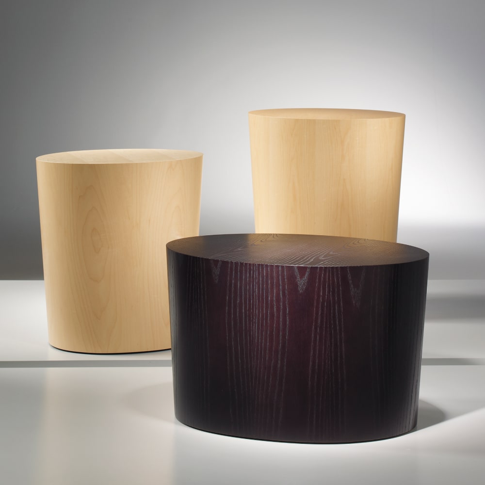 Geometry reimagined—an elemental oval form becomes infinitely more interesting with our Christina Occasional Tables. Appearing as a spiral, each wood table features an angled vertical notch that allows for unique groupings. Available as a side or coffee table, the Christina is offered in multiple heights with tapered, reverse taper, true oval, and plinth shapes for added versatility. Optional stone or solid surface tops are also available.
