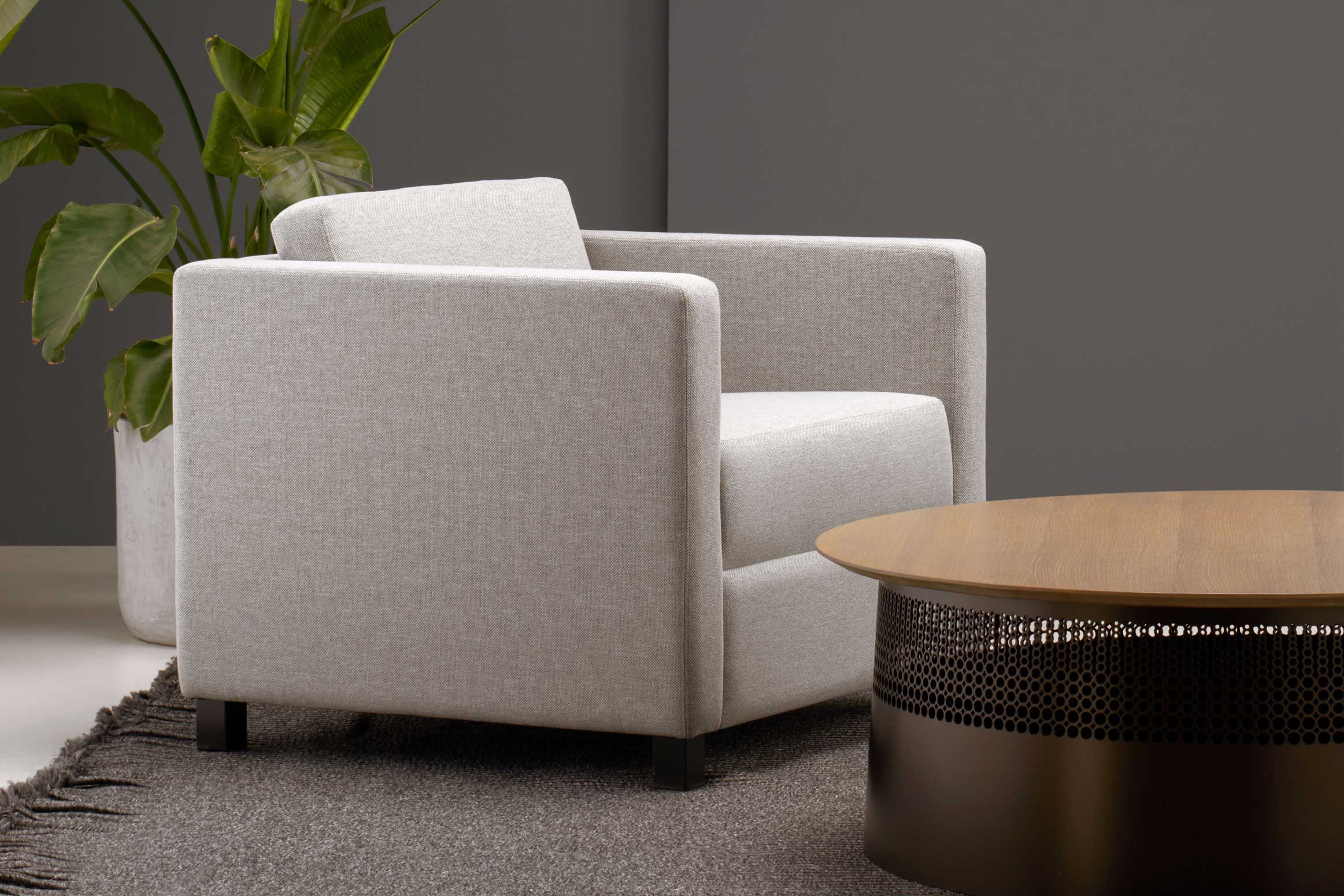 Offering supreme comfort in a symmetrical form, our Classic Lounge lends an elegant aesthetic to any environment. Sleek lines and distinctive metal feet create a timeless look that has allowed the design to age beautifully yet remain surprisingly current. Fully upholstered with fixed cushions, the lounge can be specified with optional wood feet.