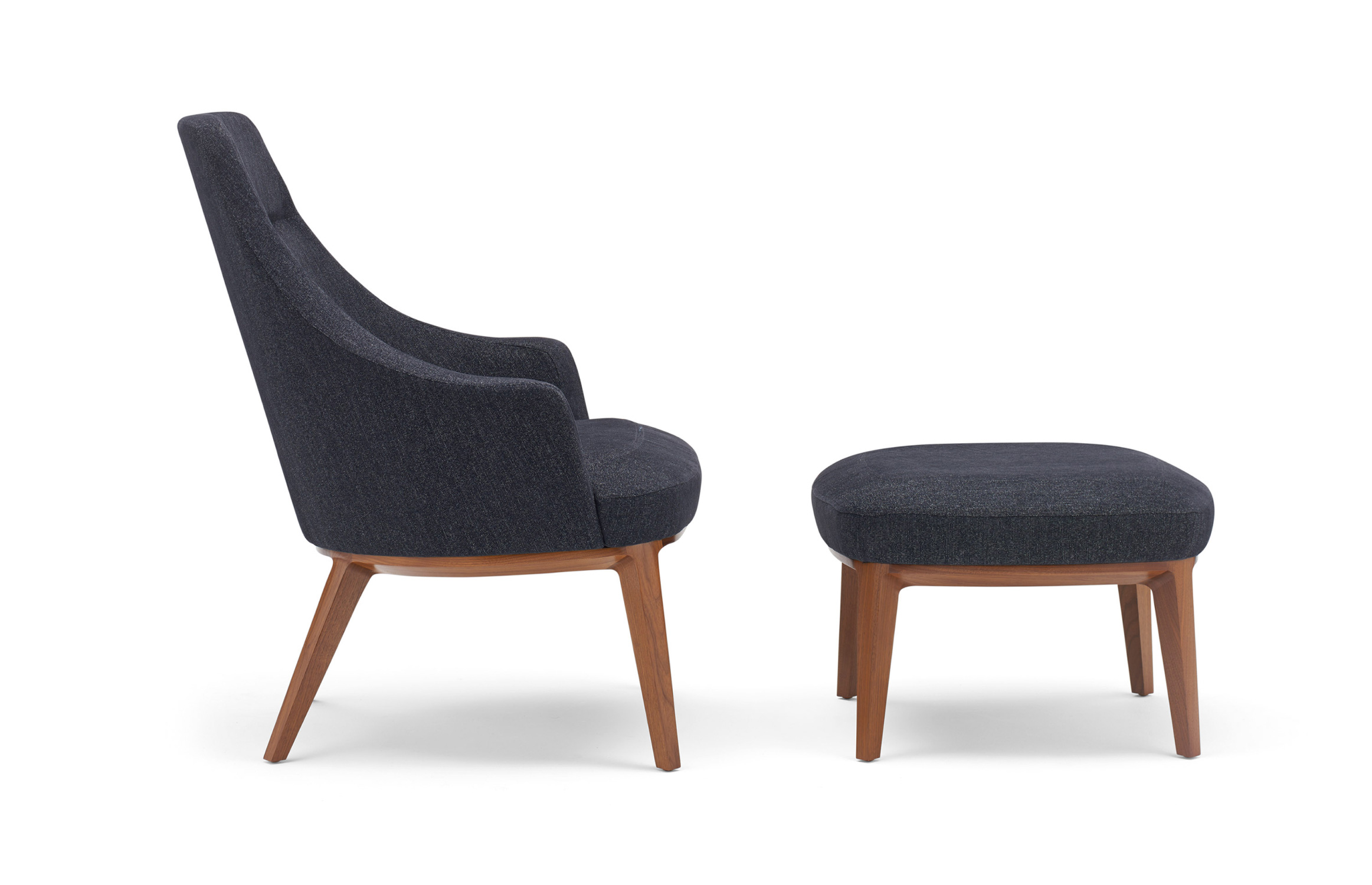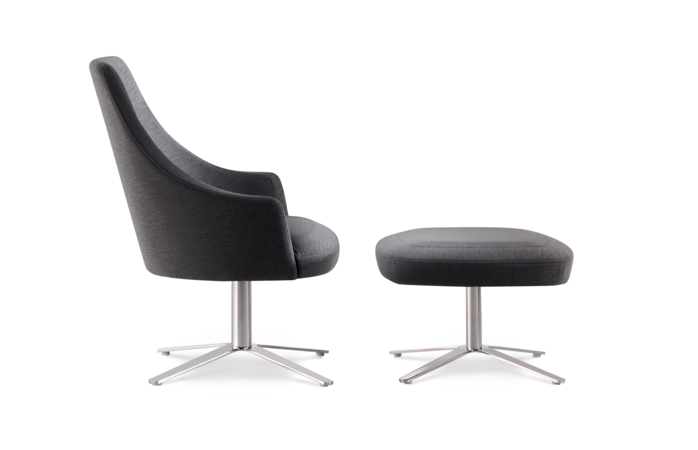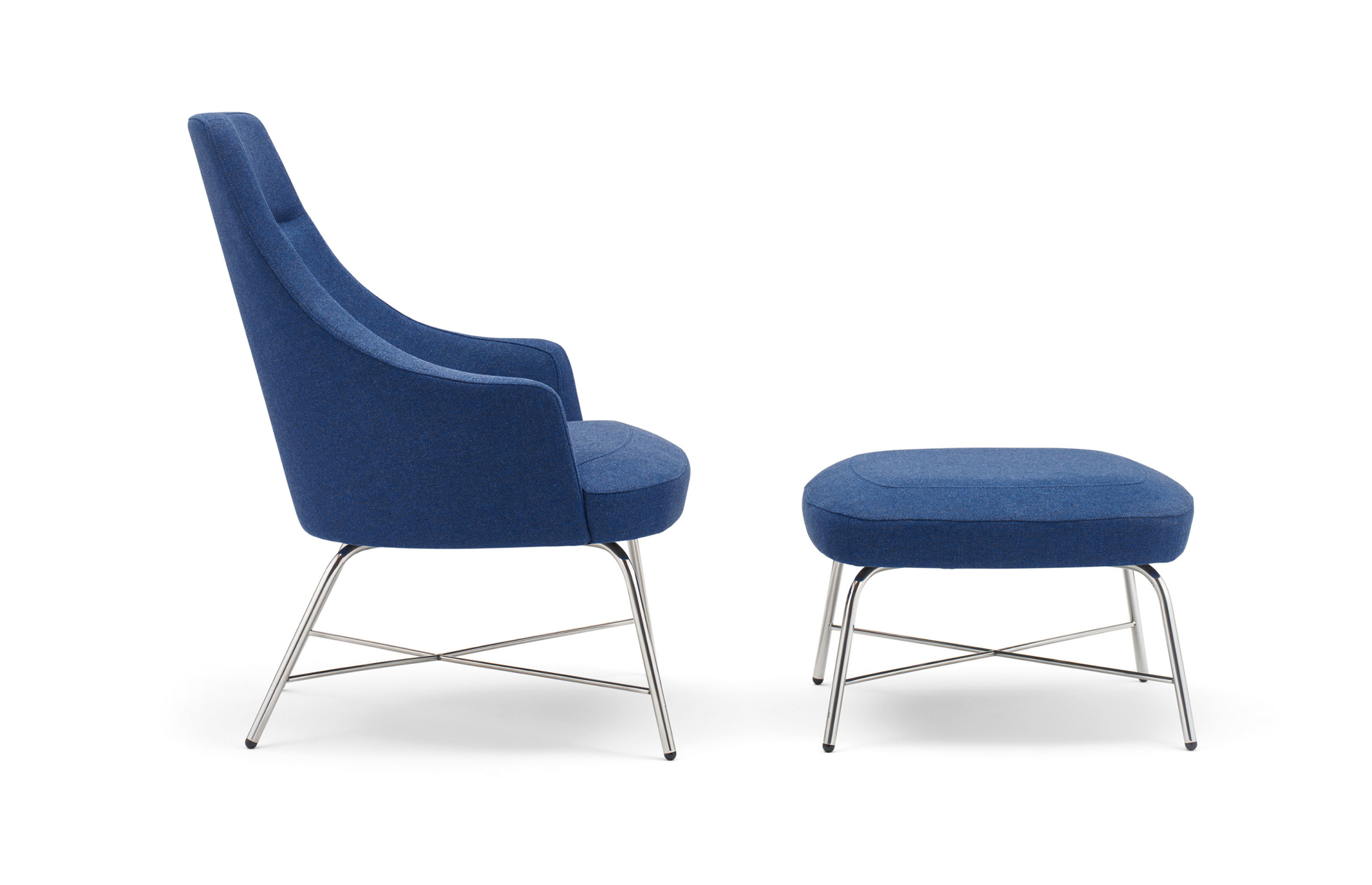 Marked by its uniquely faceted upholstery, the Clover Ottoman can also serve as a low stool for additional seating. Sophisticated beauty is expressed through its clean lines and refined base, which offers the contemporary look of metal or the residential warmth of wood. Base options include a sleek stainless steel column or a four-legged version in wood or tubular steel.