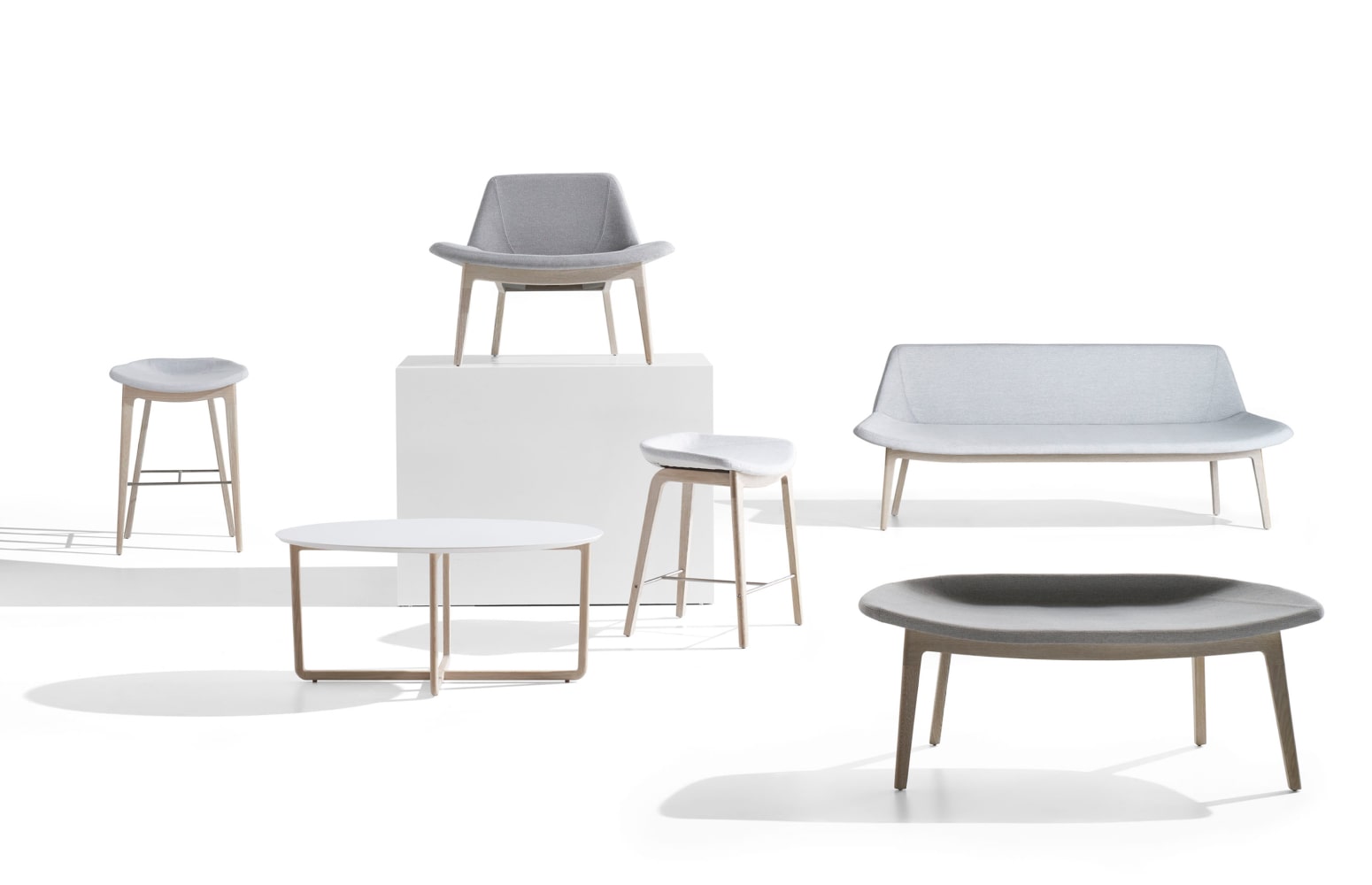 Sculptural, clean silhouettes and refined details are what distinguish the Current Sofa. Generous in scale, the Current Sofa represents a fresh form that brings comfort and sophistication to any environment. Designed as a “destination” for work or respite, the sofa can be specified with a sleek metal base or a contoured wood base that adds visual warmth to spaces.