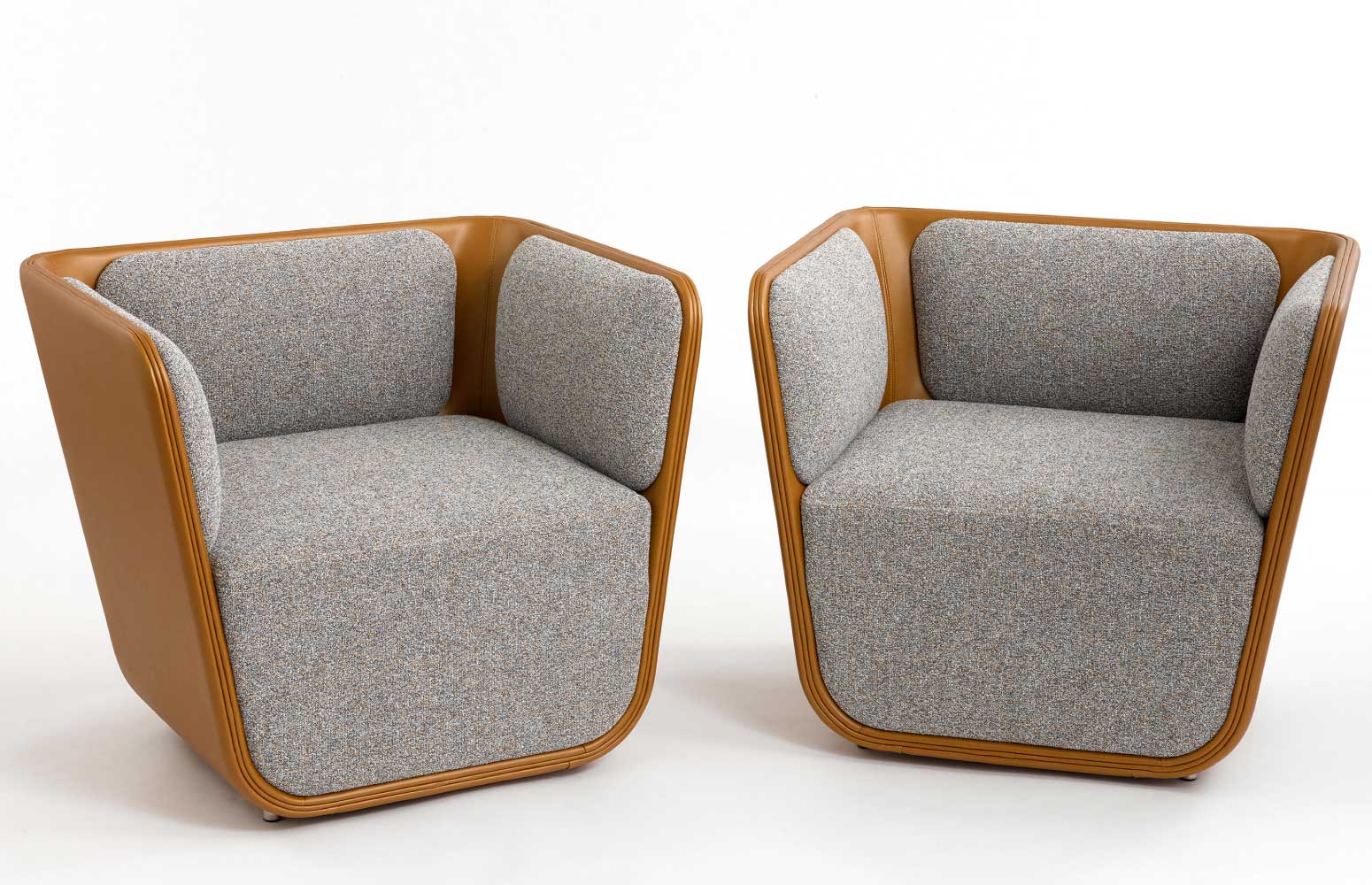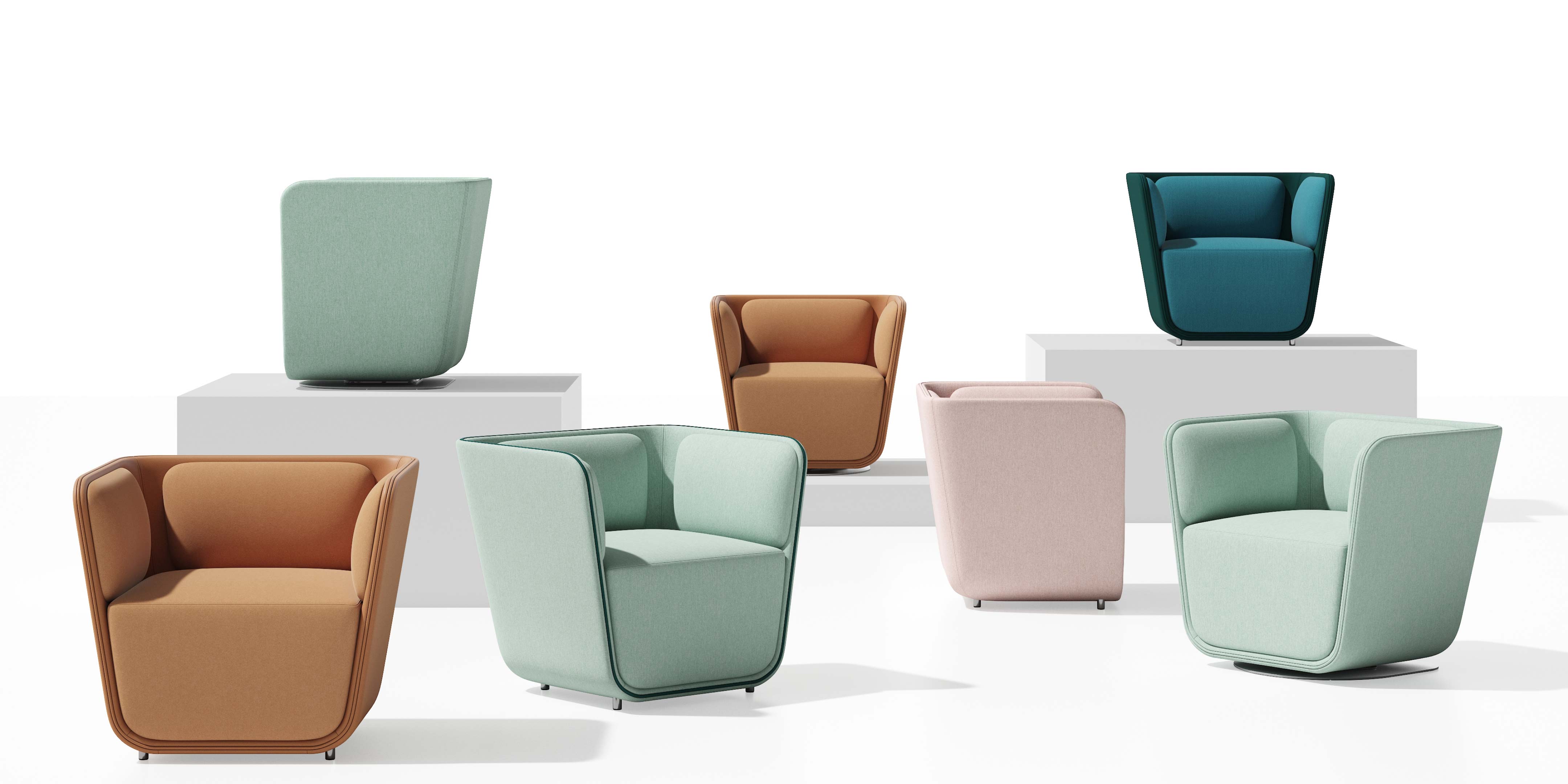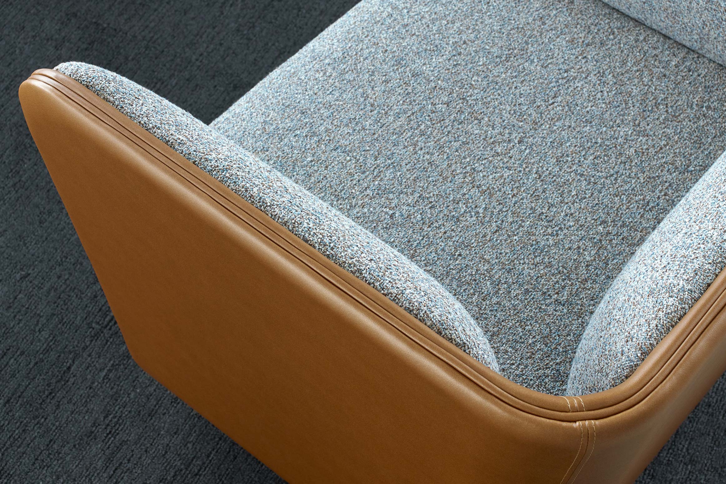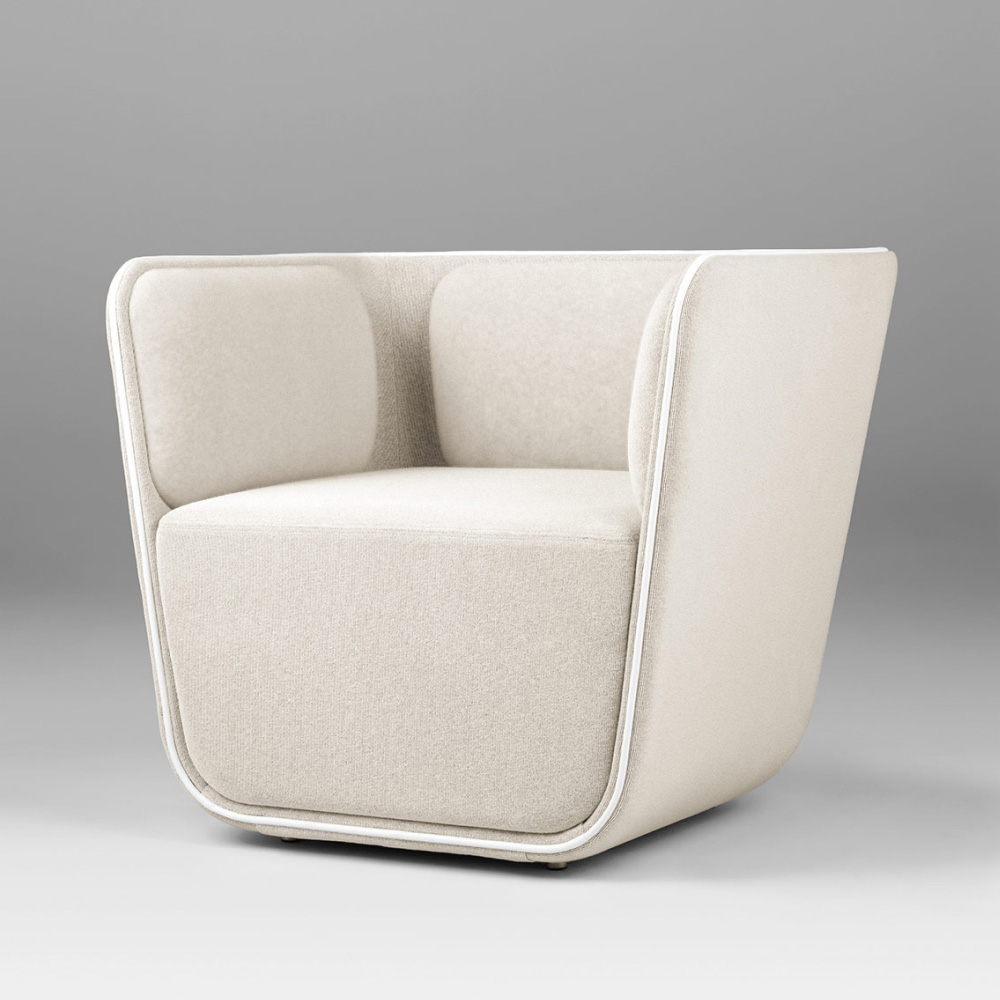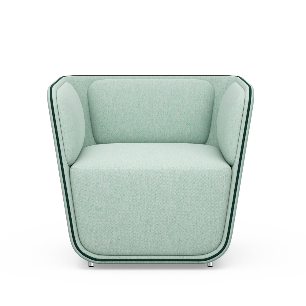 The language of line and surface is represented in the design of our Elle Lounge, which was inspired by the spirit and motion of skateboarding. Softened geometry highlighted with a continuous line conveys movement and energy while offering a fresh approach to elegance. The upholstery features an uninterrupted welt that emphasizes its curves and can be specified in another material for added contrast. Different material options can also be specified on the lounge upholstery to create a distinctive look.