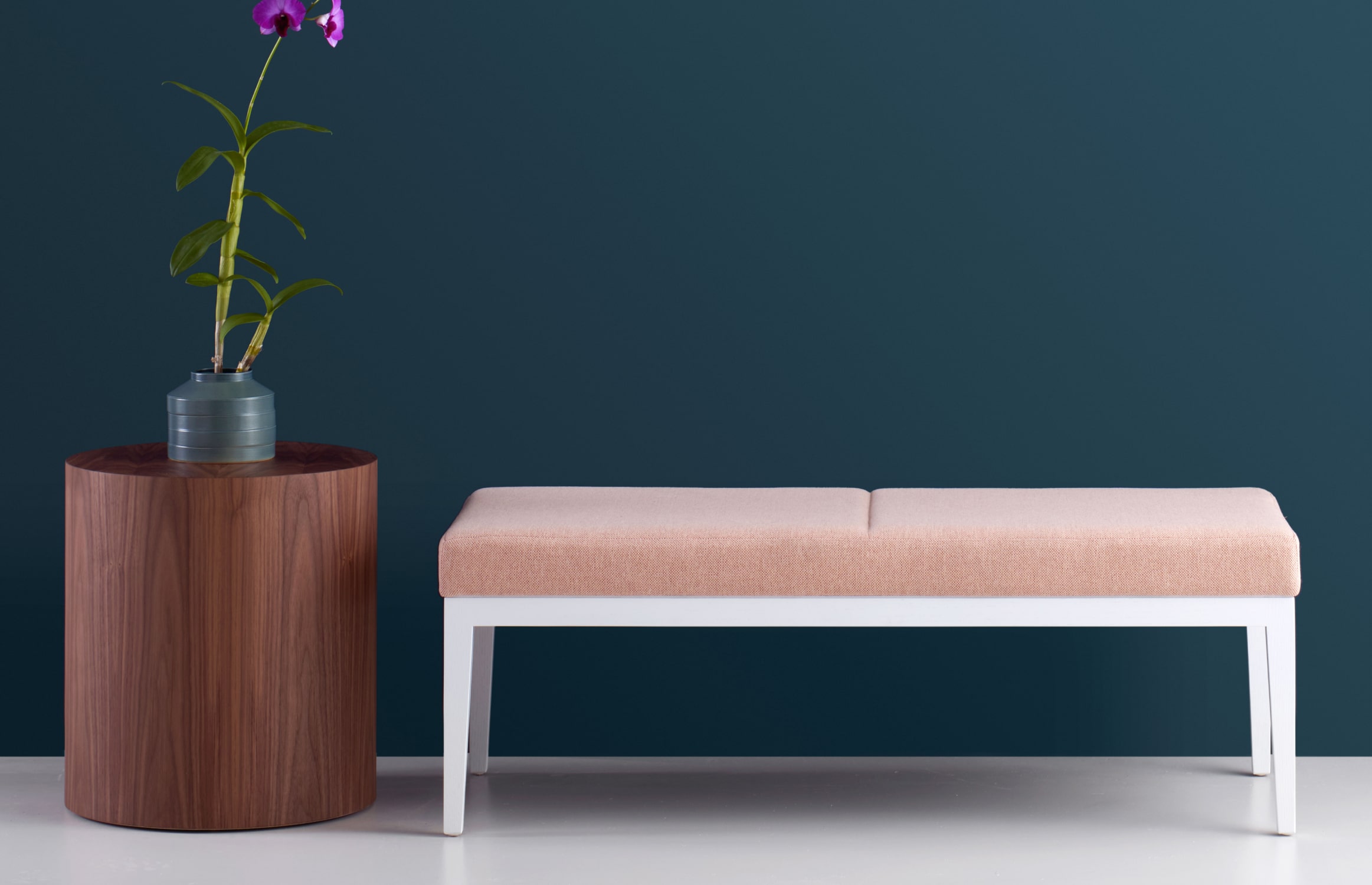 The straightforward design of our Livy Bench features a generously-sized upholstered seat cushion with indented stitch detailing. The comfortable seat rests atop a solid wood base accented by slightly splayed, tapered legs. Available in two lengths and multiple wood finishes, the Livy Bench offers an inviting place to sit and wait.