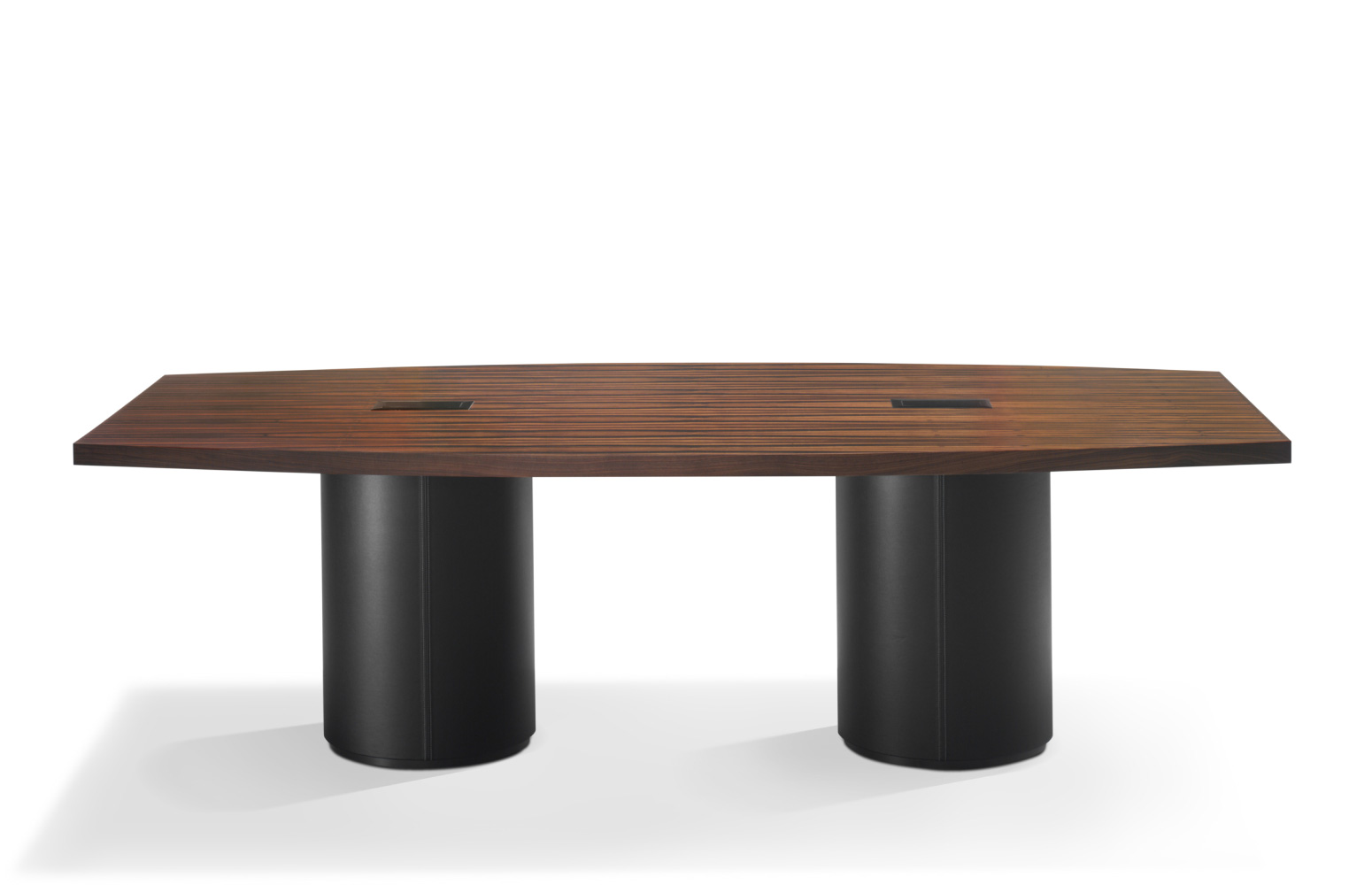 Structural simplicity is the hallmark of the Metros Meeting Table. Elemental in form but abundant in material choice, its design transforms the practical into something captivating. Cylindrical bases in various materials serve as the foundation for wood or stone tops that are available in a variety of shapes and edge options. Optional power/data units conceal cords while supporting communication and productivity needs.