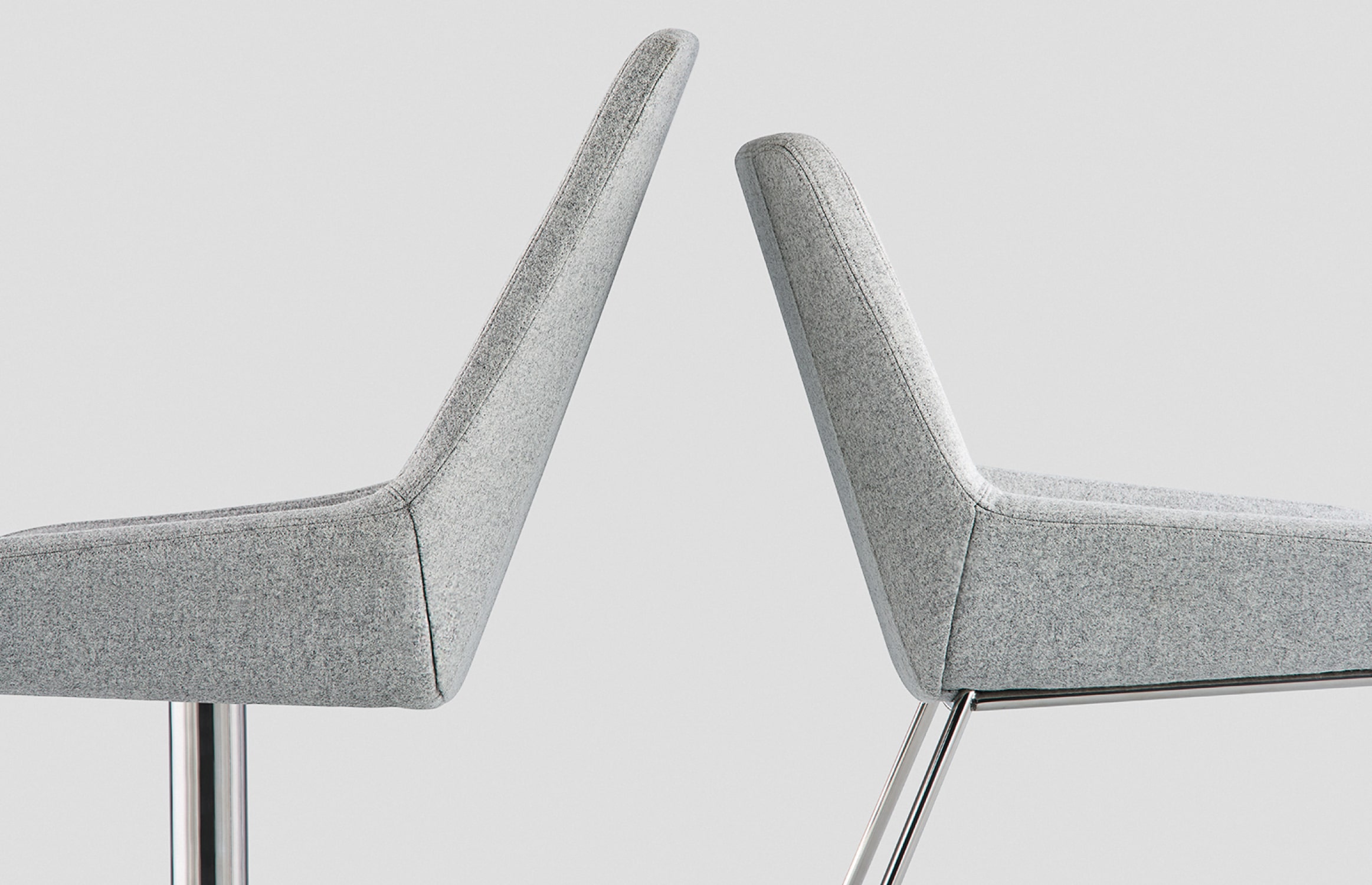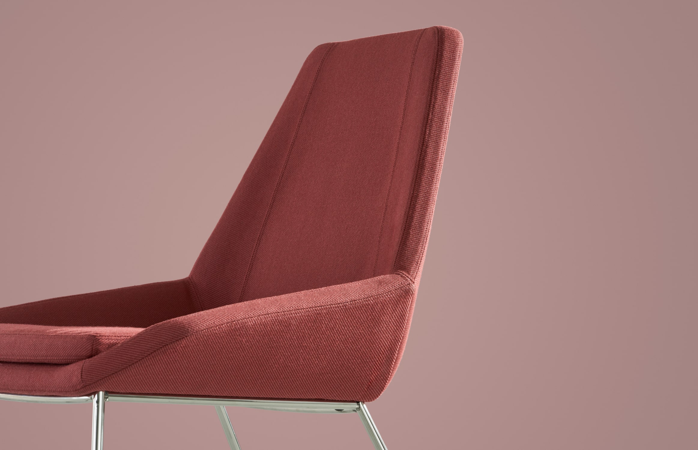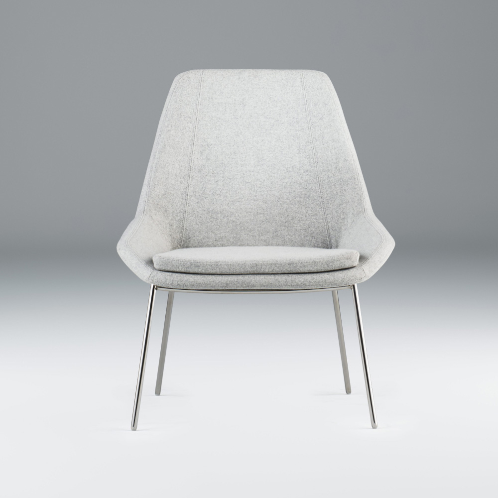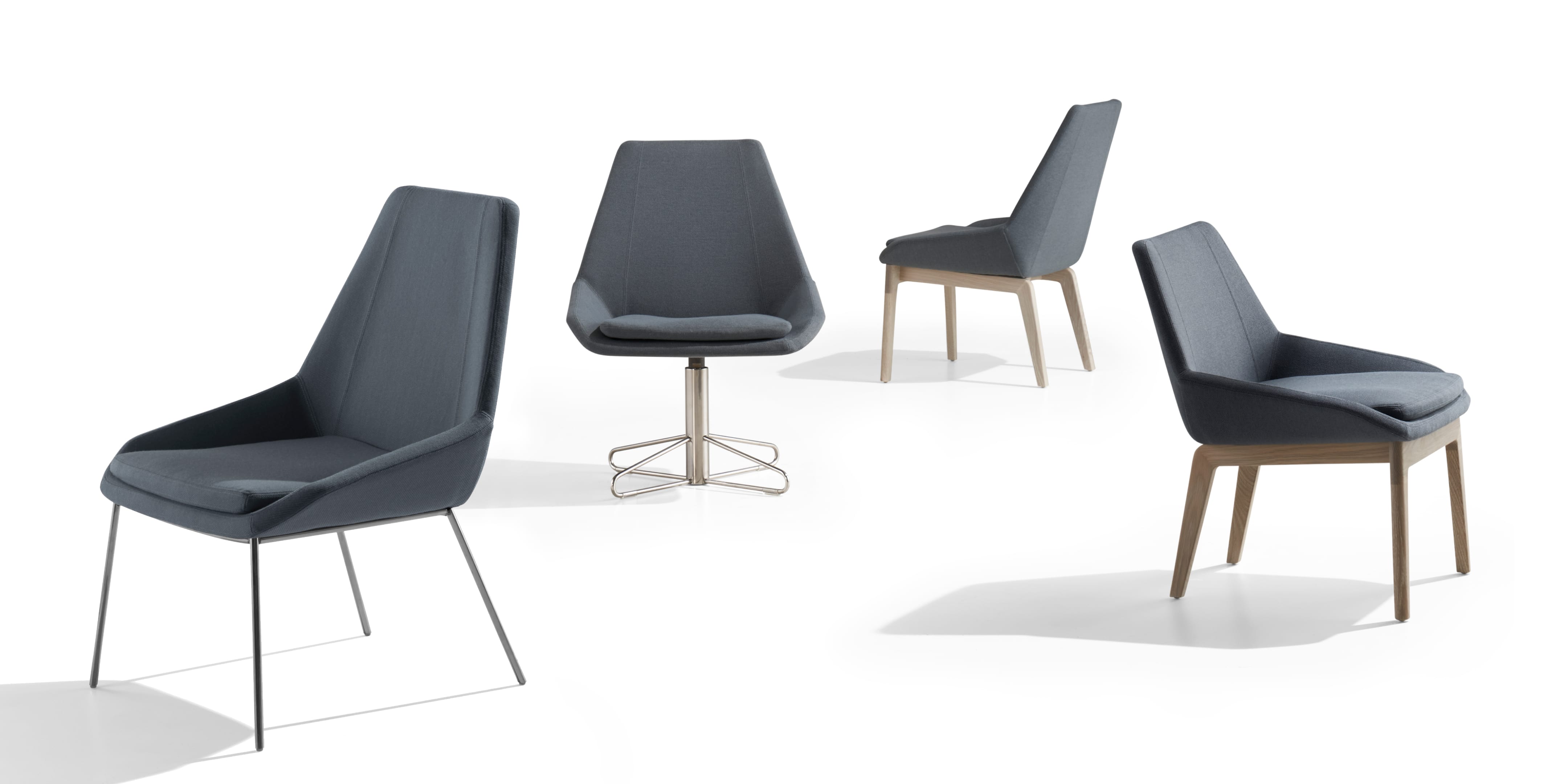 Designed to envelop the various postures used in collaborative work, our Port Lounge embraces the user in comfort and support while allowing freedom of movement. Available with a metal or wood four-leg base and an airy metal swivel base, this lounge is also offered in a high or low back version for flexibility in application.