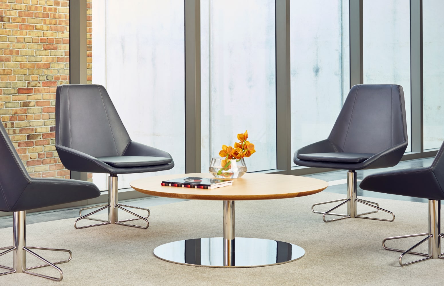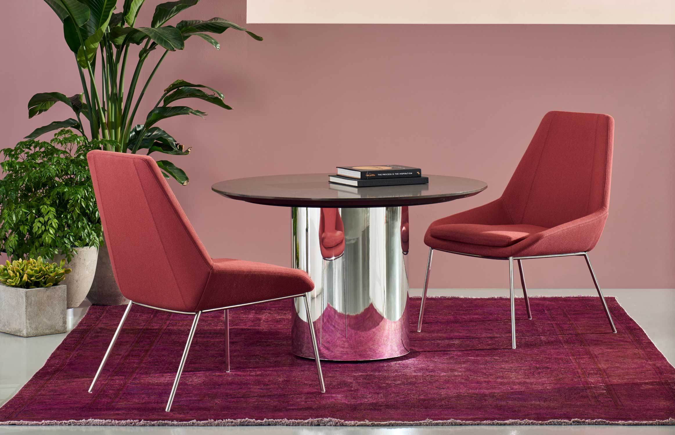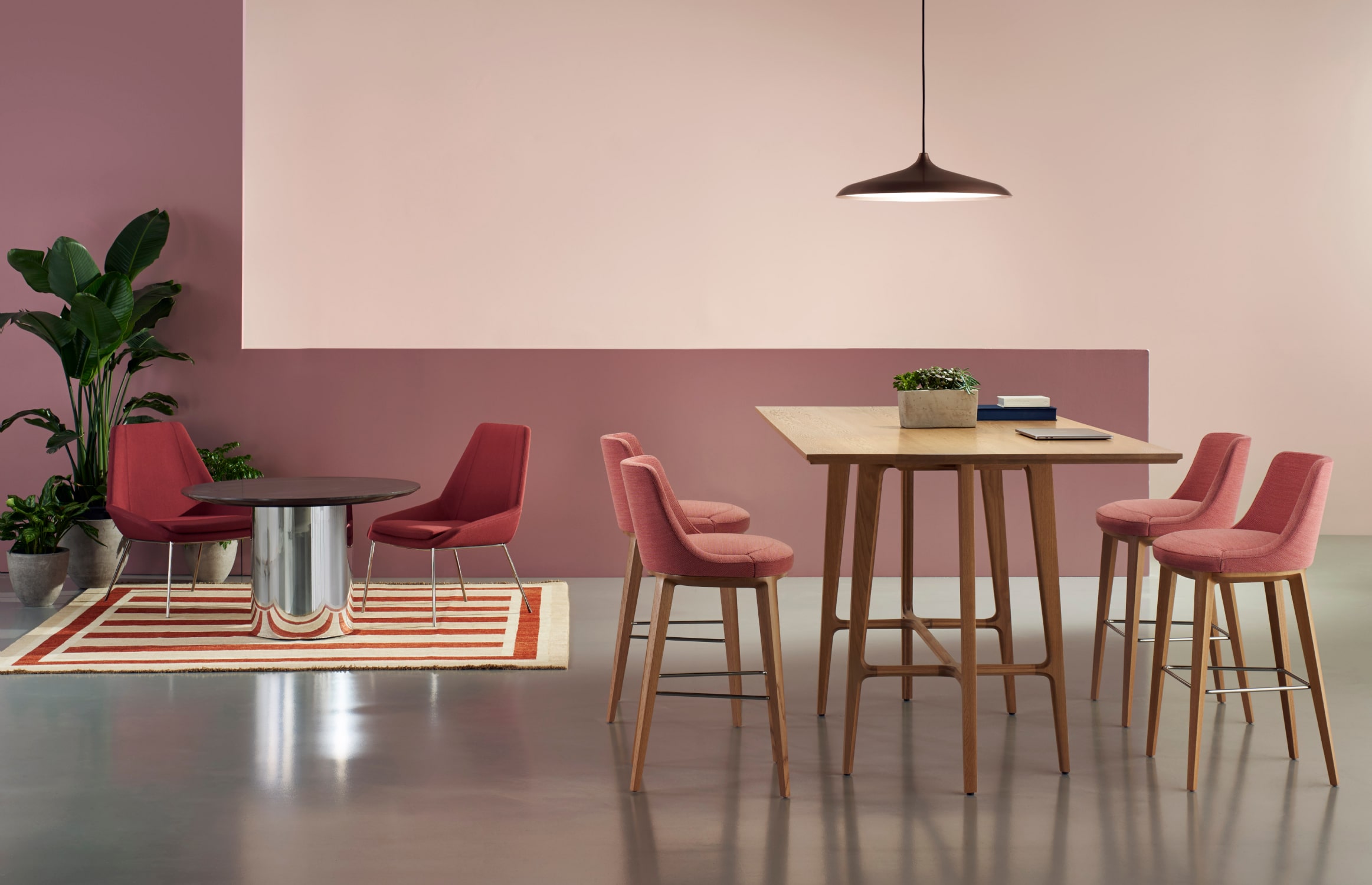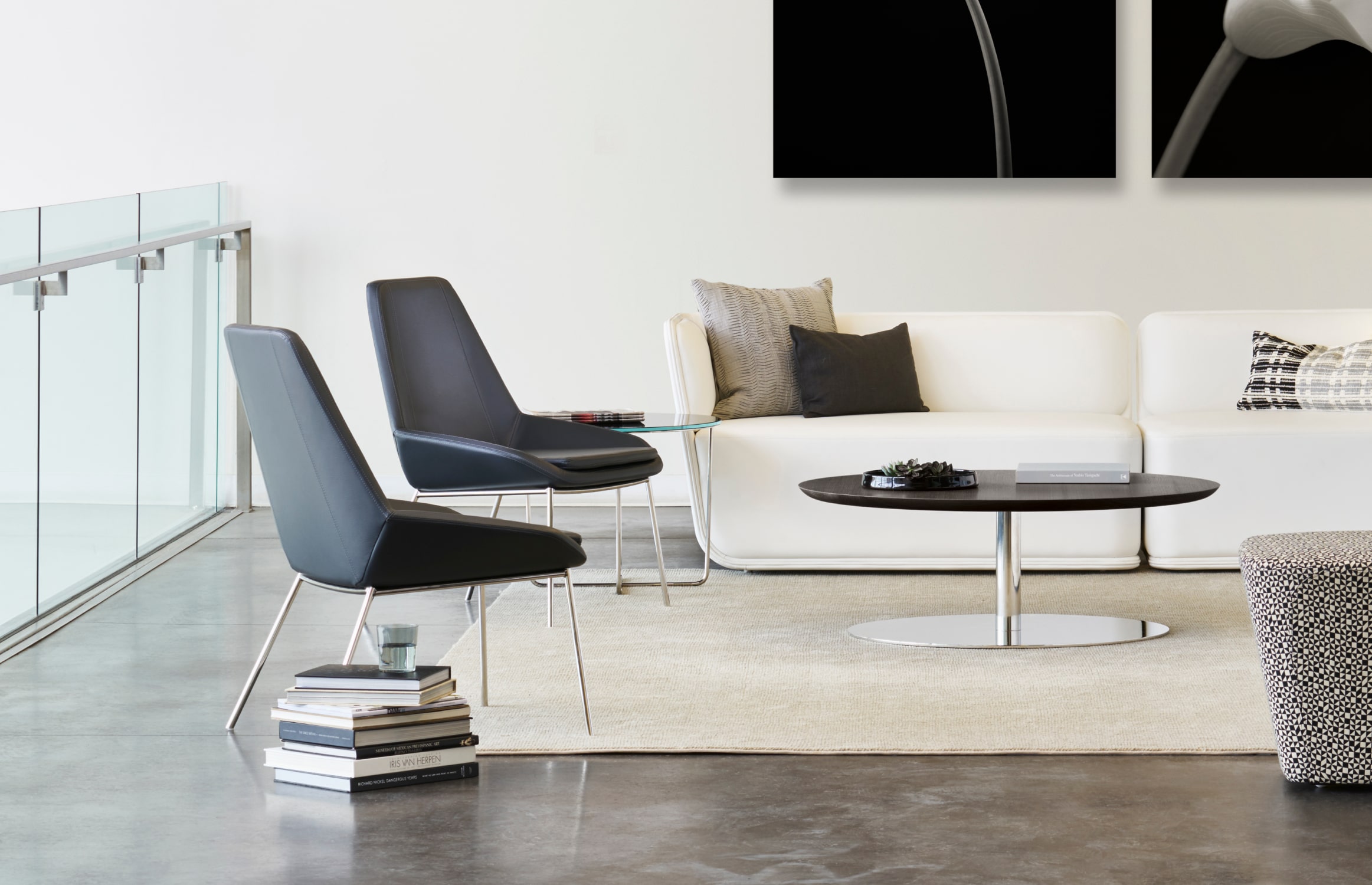 Designed to envelop the various postures used in collaborative work, our Port Lounge embraces the user in comfort and support while allowing freedom of movement. Available with a metal or wood four-leg base and an airy metal swivel base, this lounge is also offered in a high or low back version for flexibility in application.
