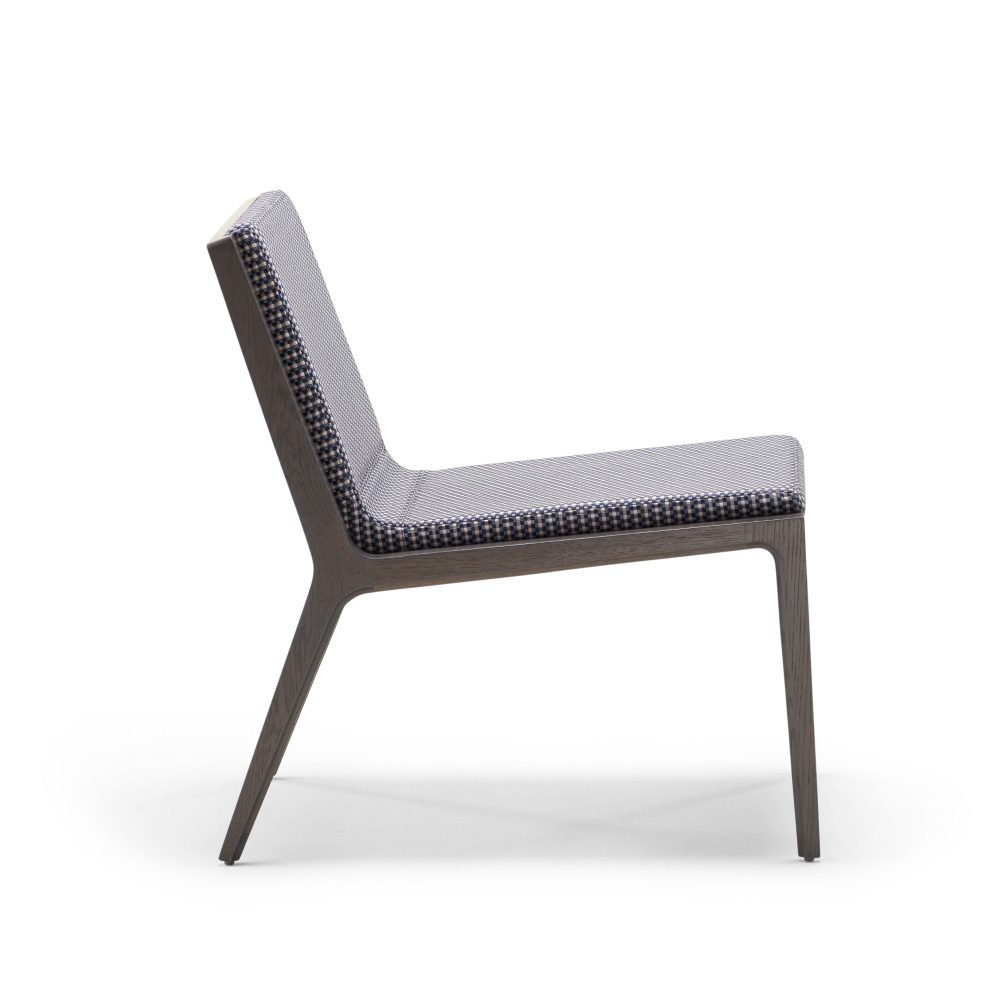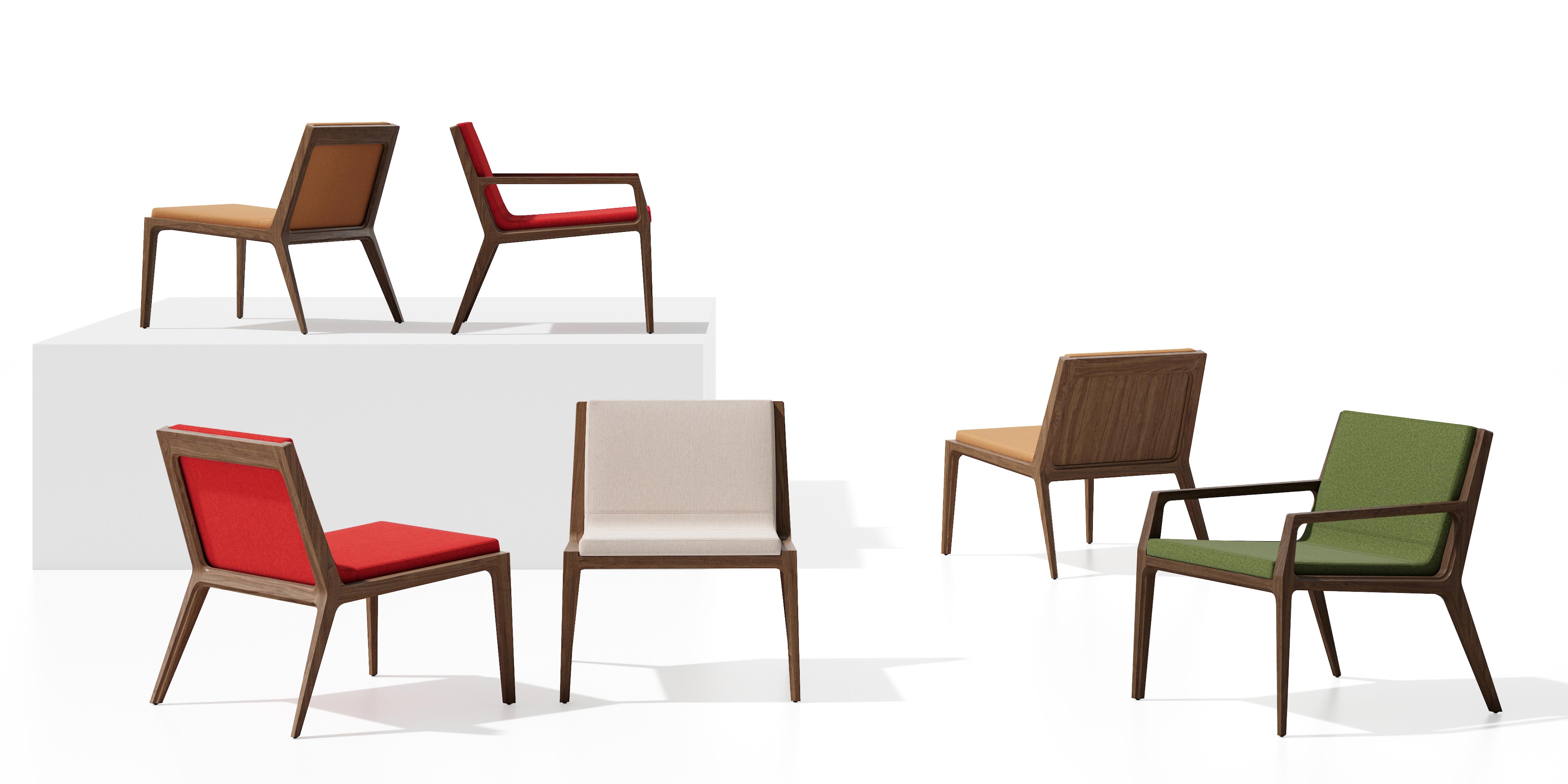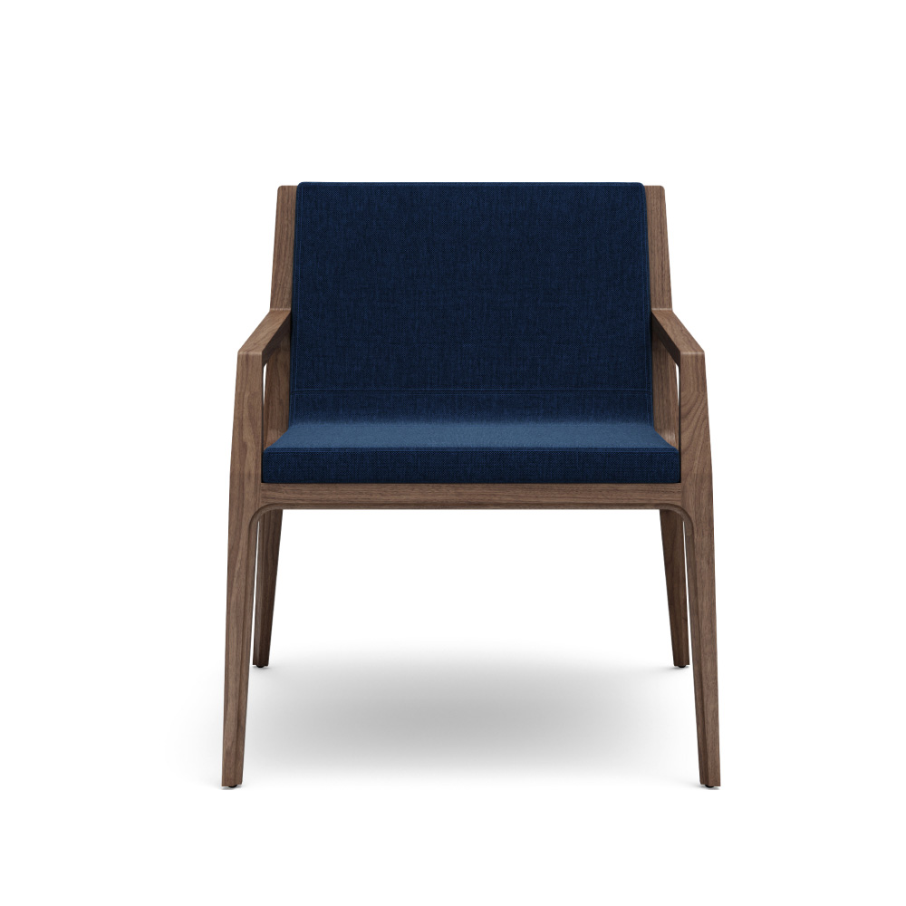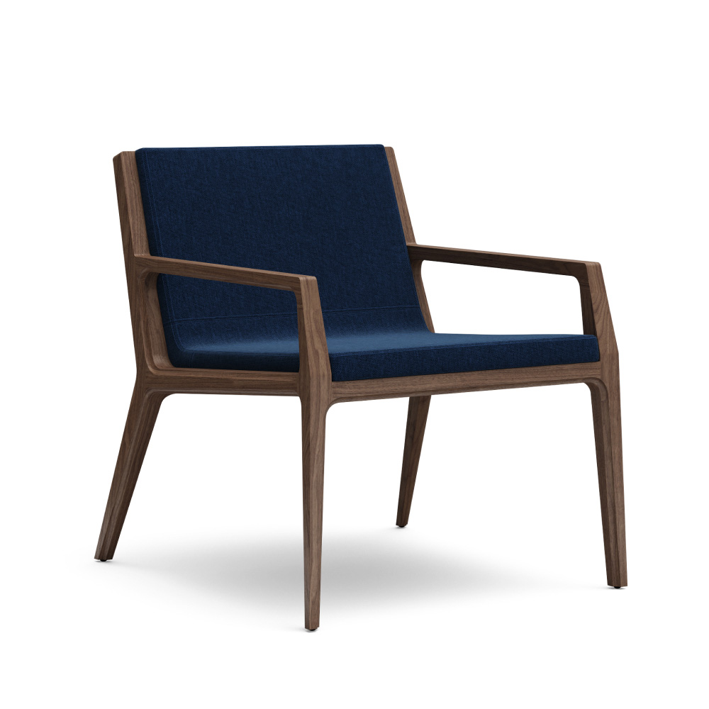 The refined proportions and elegant angles of our Revo Lounge Chair represent the best of heritage woodcraft and contemporary technique. Upholstered seat and back cushions feature the same crisp edges as the sculpted wooden frame, offering a fresh perspective to modern environments. Available with or without arms, the chair can be specified with a wood or upholstered back.