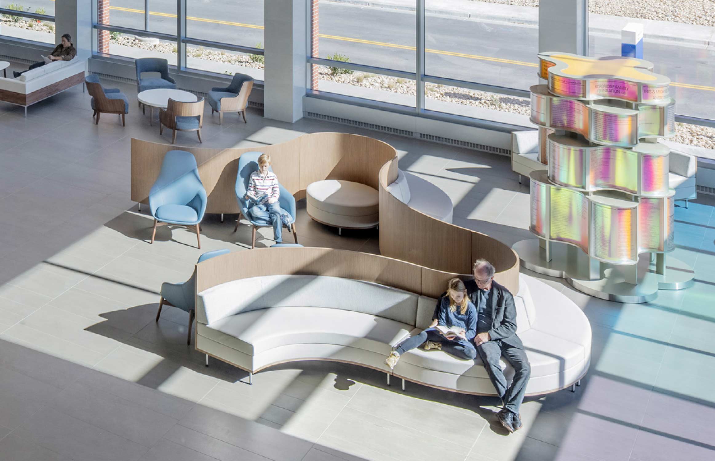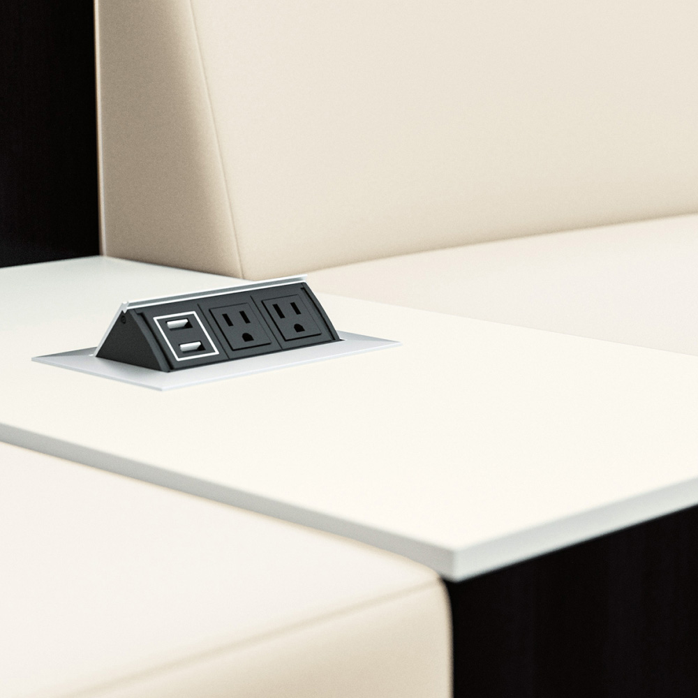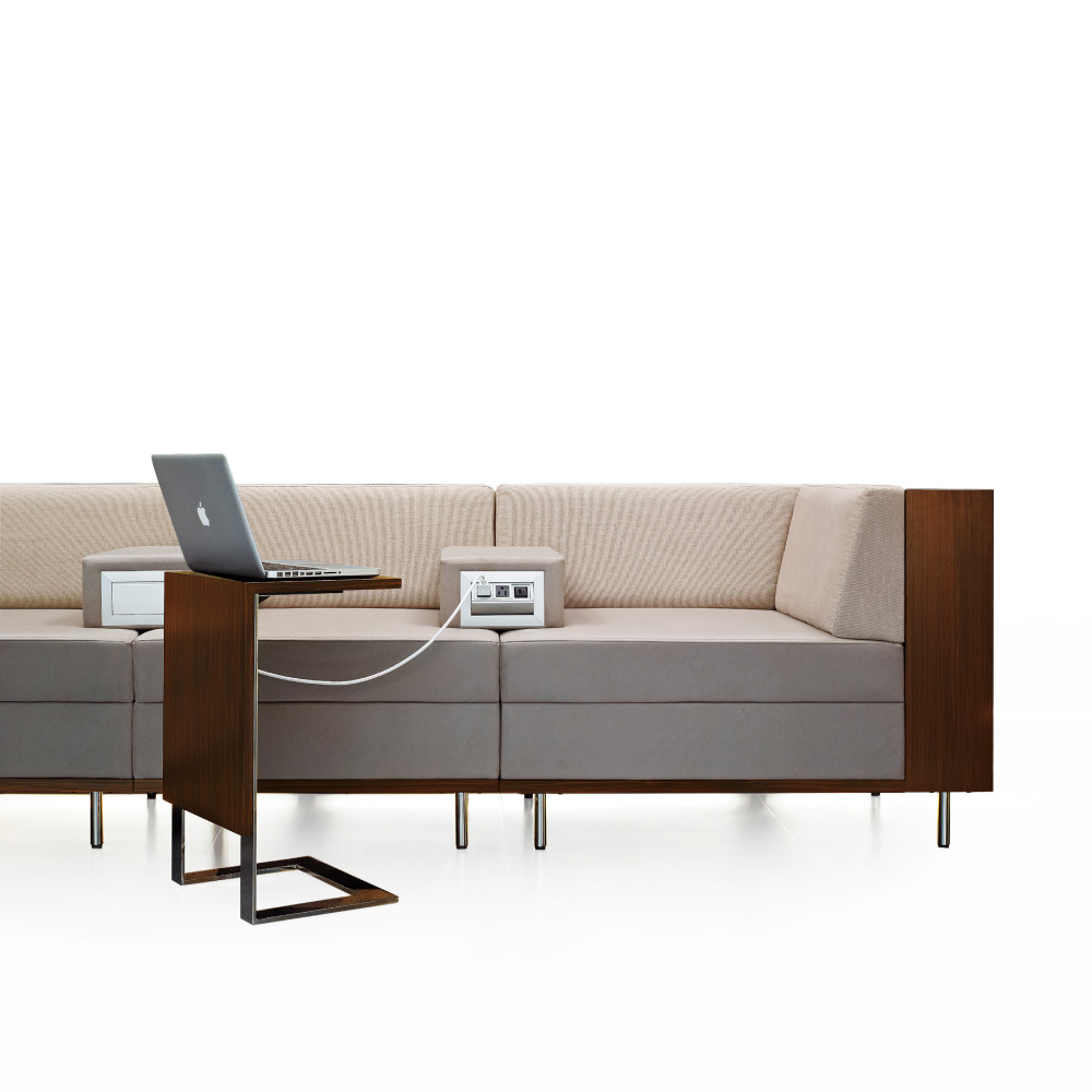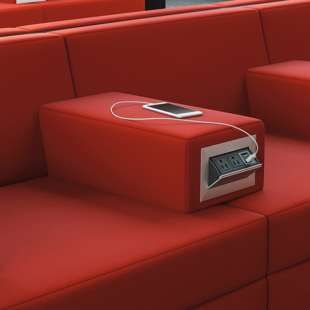 Thick and Thin can help keep mobile devices charged with optional powered lounge components or an optional powered armrest.