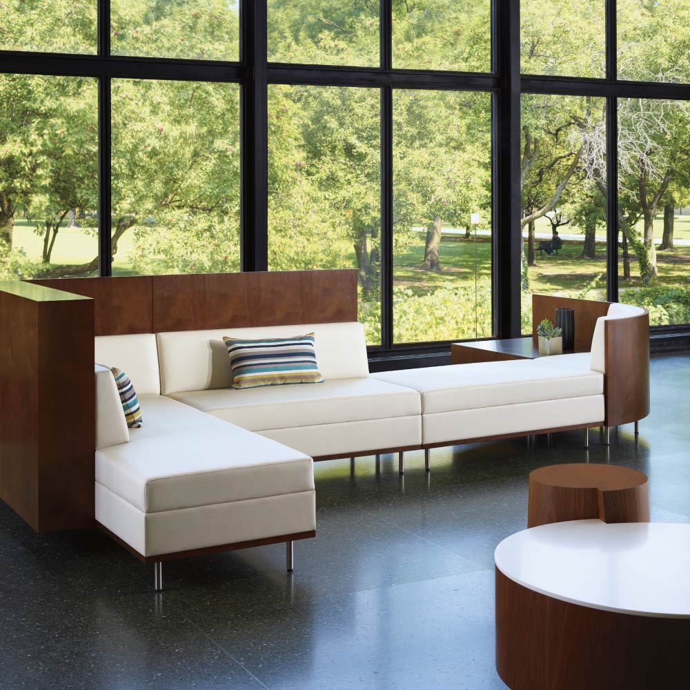 Highly adaptable to support any space, Thick and Thin Lounge components can be combined in a multitude of configurations or used as standalone seating. Varied wall heights, options for curved or straight lines, and thick and thin proportions allow customization for the degree of enclosure and versatility in layout. Set-back legs form a floating effect while an array of material choices combine to create a dynamic aesthetic.