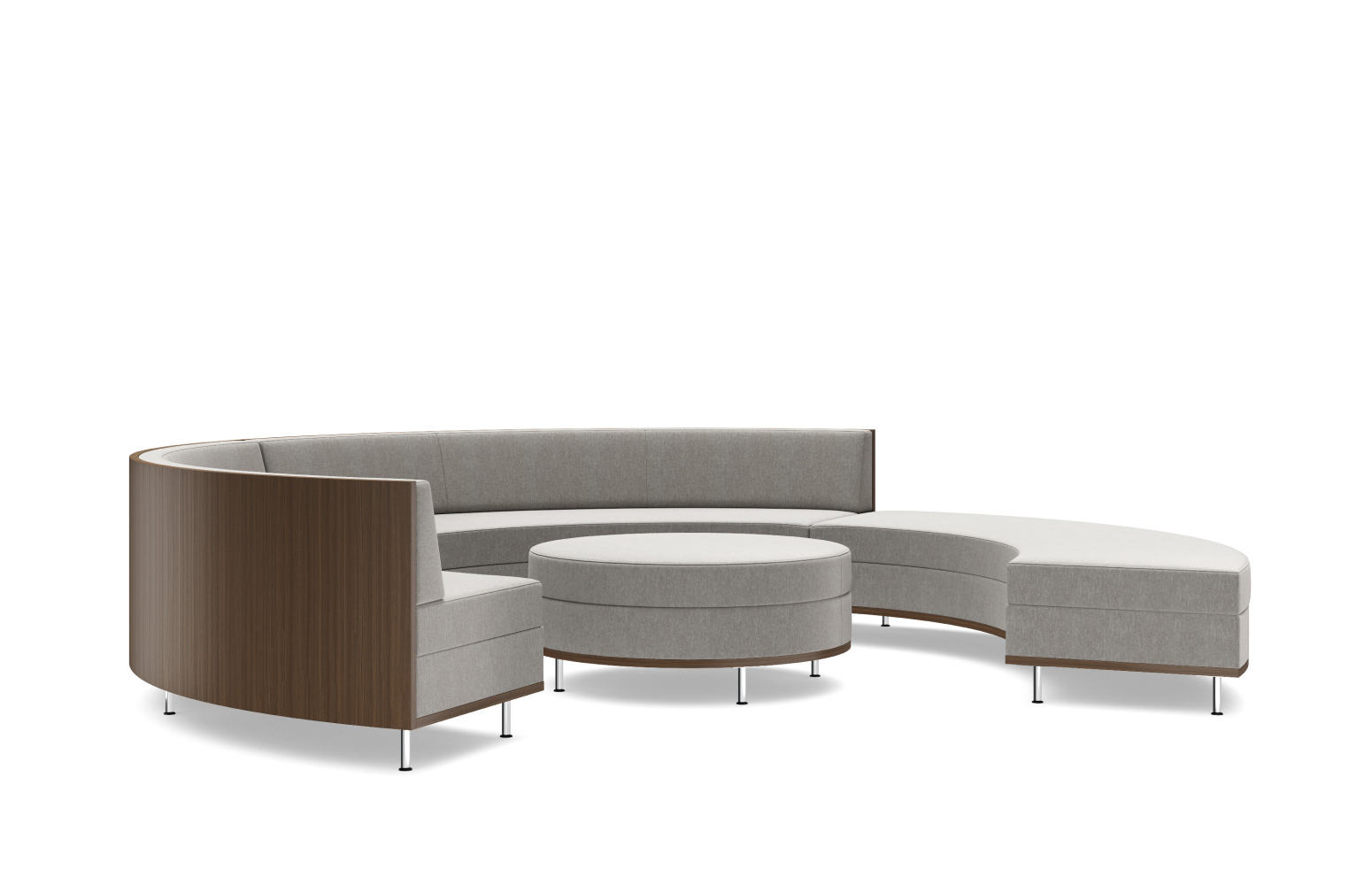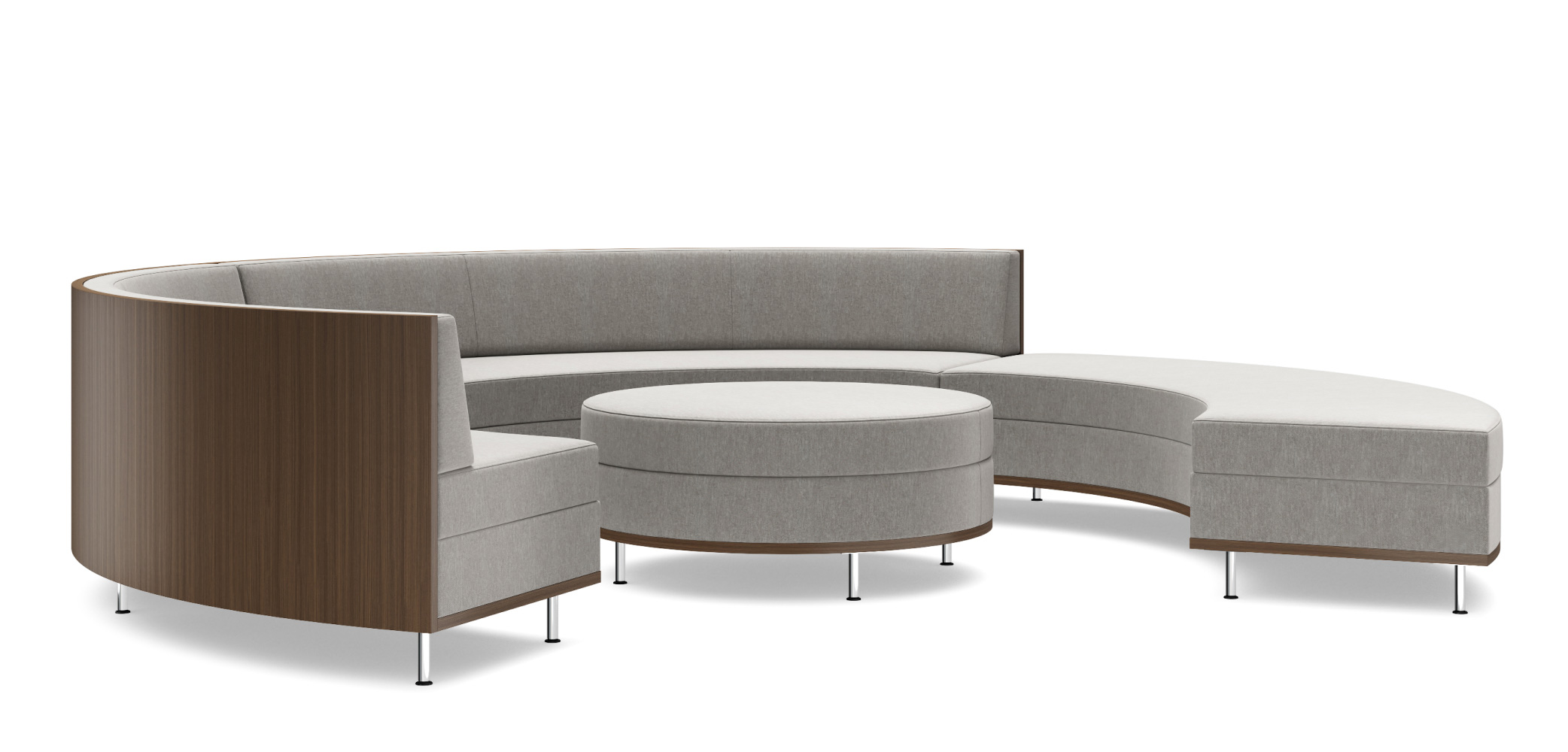The versatile Thick and Thin vocabulary includes straight and curved benches and a round ottoman to provide maximum flexibility for designers in accommodating environment needs. Each element features clean lines and set-back legs that form a floating effect. Combine components to create a multitude of configurations or use as standalone seating.