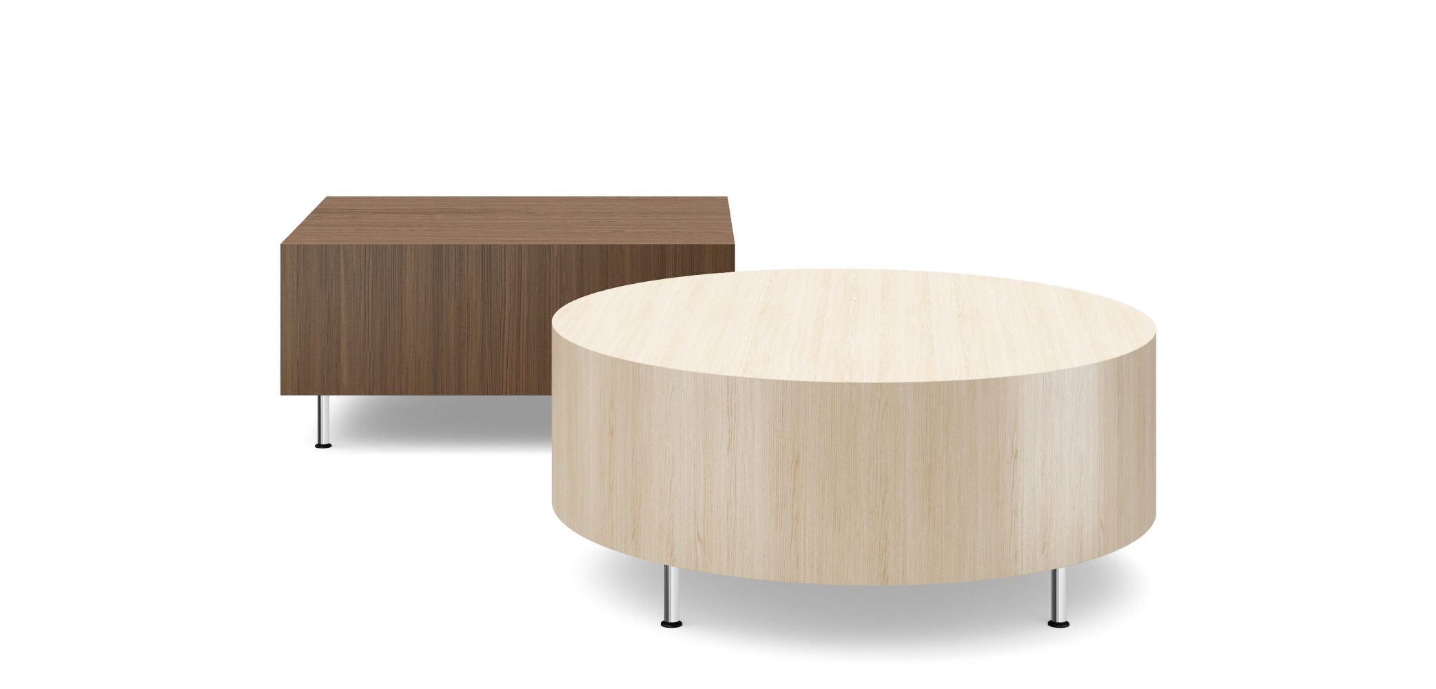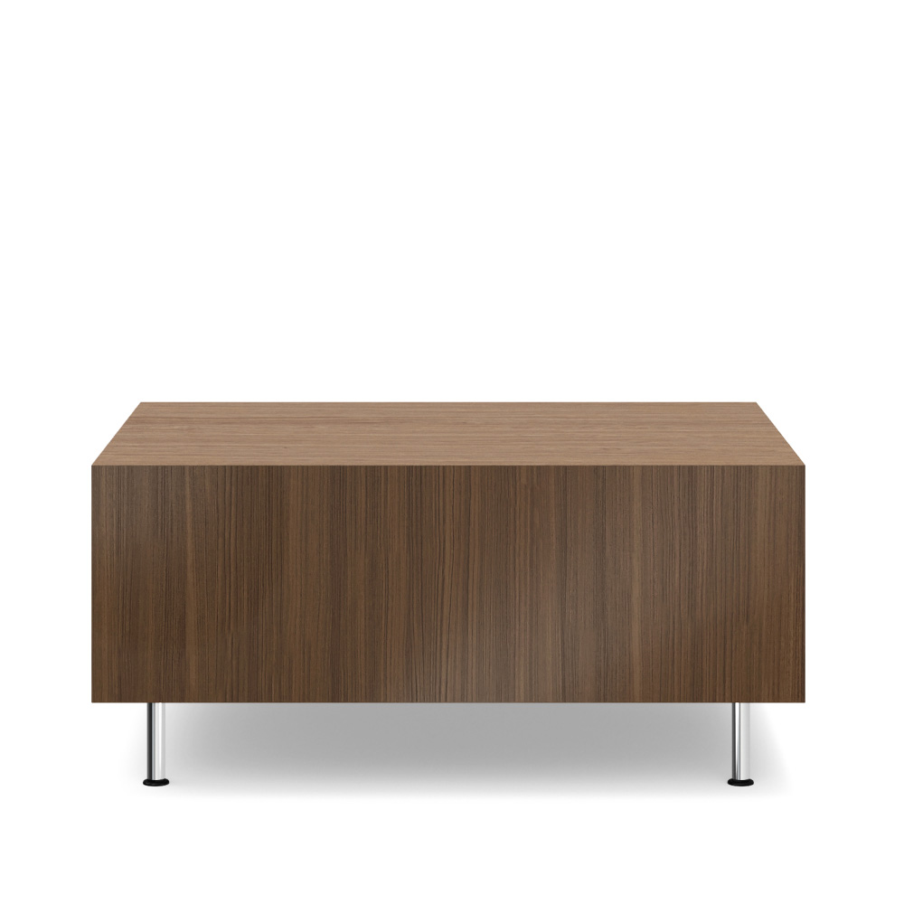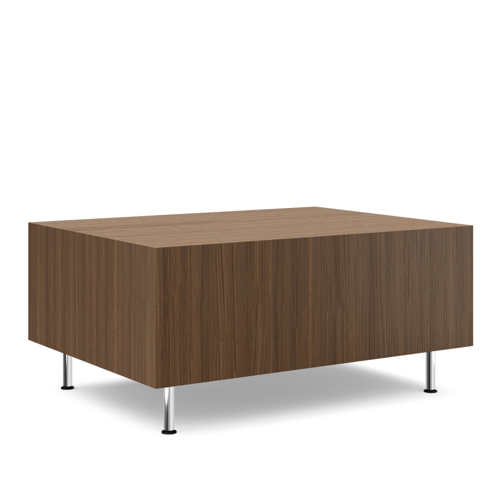 Thick and Thin Tables can be freestanding or part of a modular configuration, providing functional surfaces for work and display. Clean lines, set-back legs, and an array of material options combine to create a dynamic aesthetic. Tables are available in square, rectangular, curved, and round shapes.