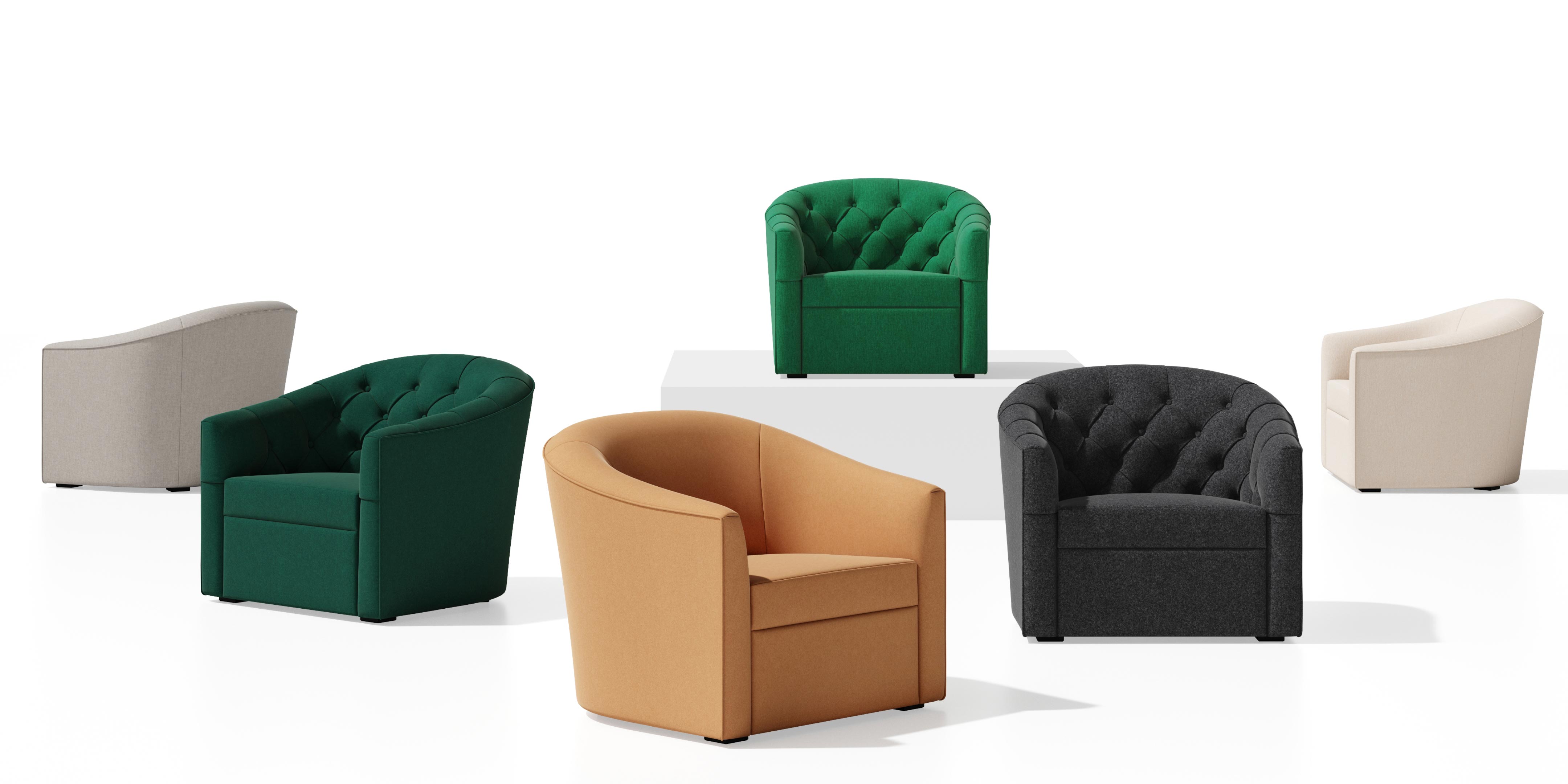 Named and modeled after the flower, our Tulip Lounge features a simple shape that communicates comfort. Wrap-around arms flow into the curved back of this stunning classic, which is available with a plain back or in a tufted version. A fixed standard base or swivel option is available.