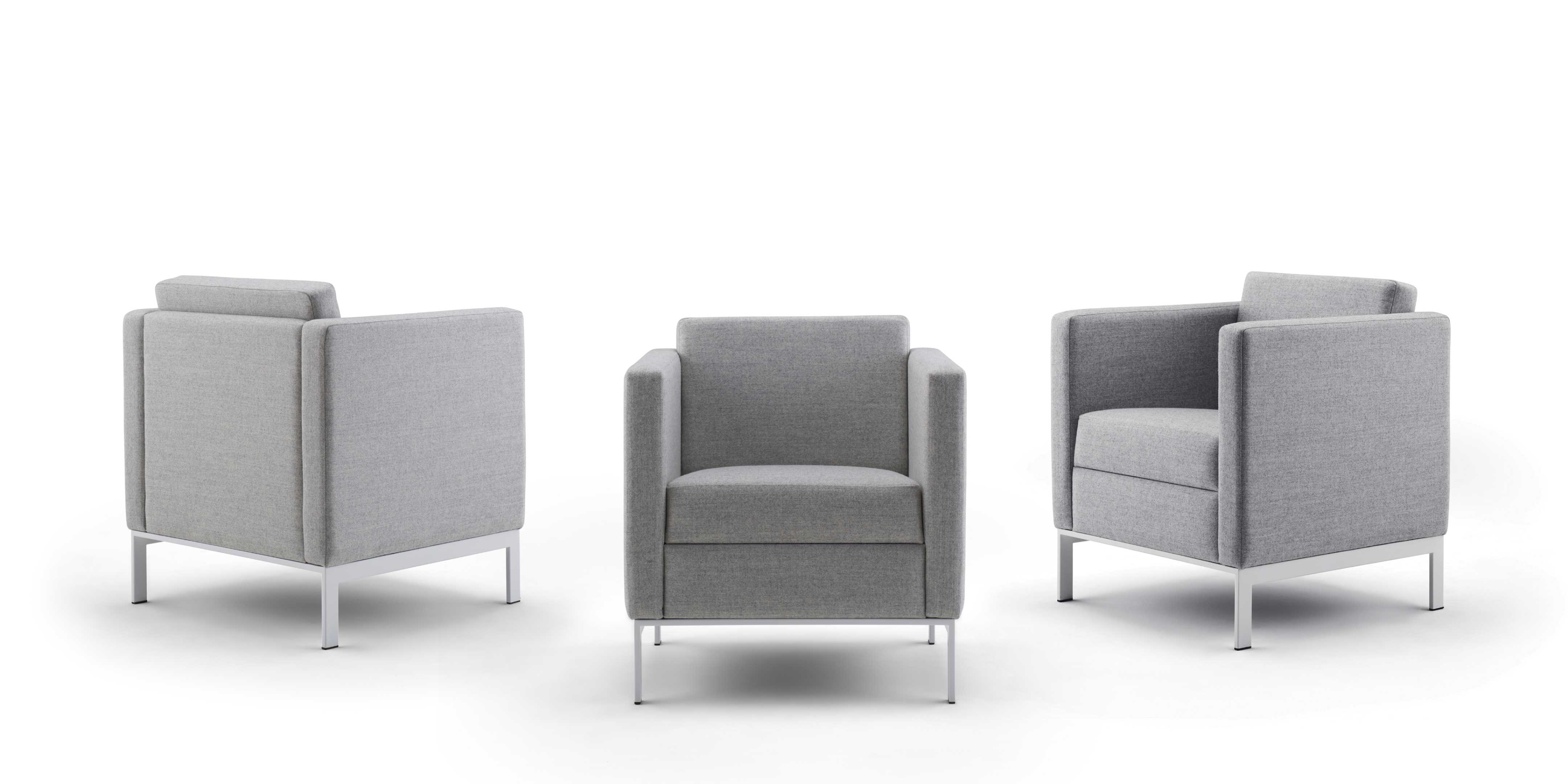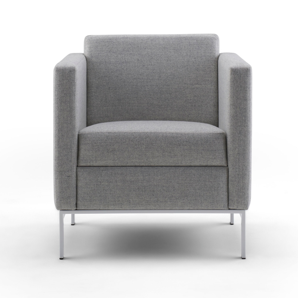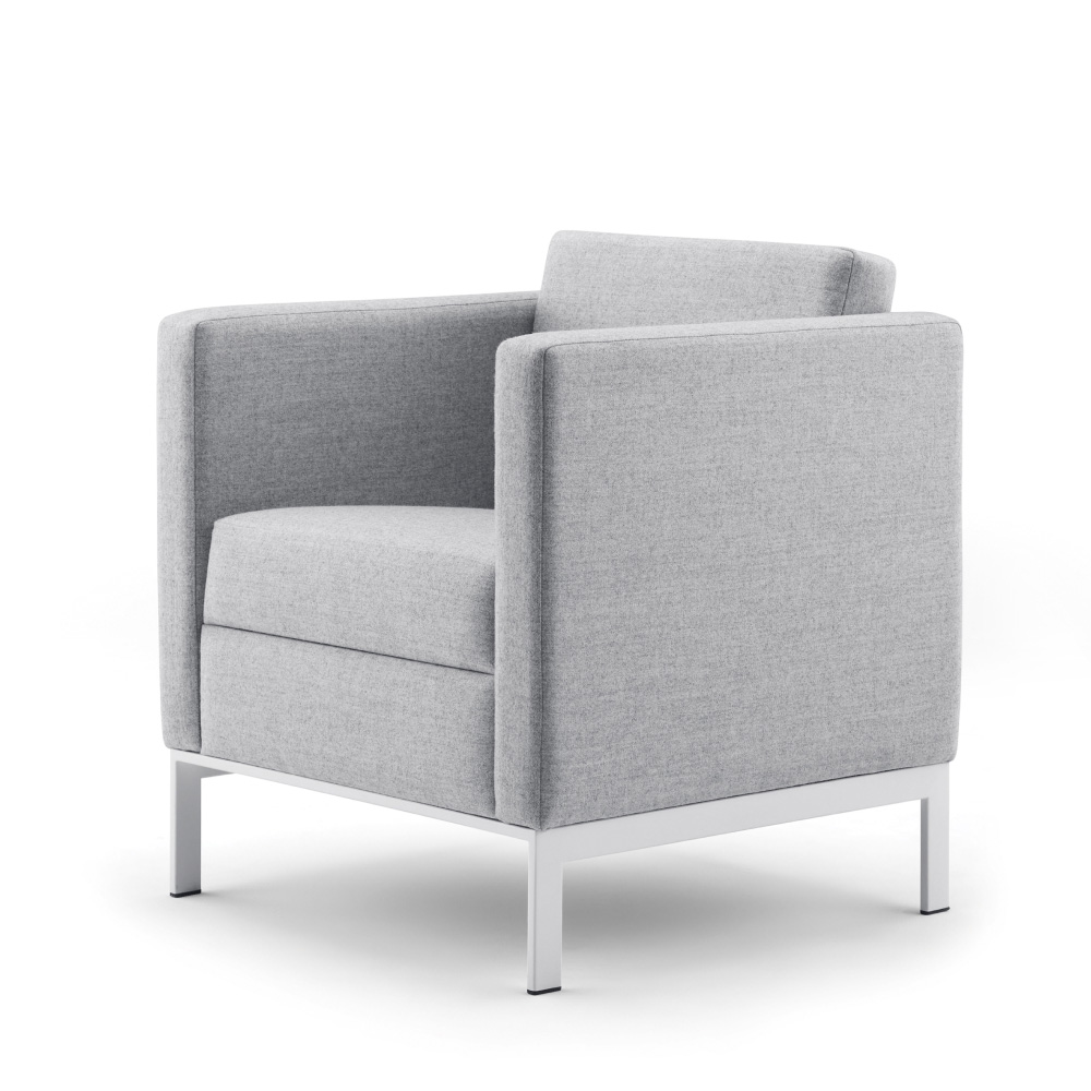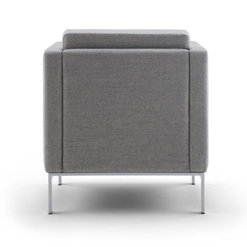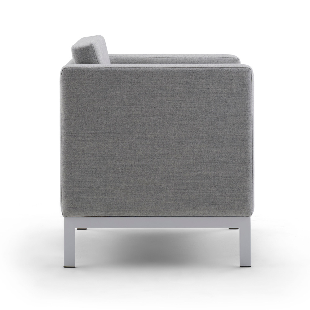 Distinctively timeless, our Venlo Lounge makes a strong statement on a compact scale. The crisp, clean lines of this balanced mid-century modern design appear to float atop its subtle yet durable stainless steel base. The elegant upholstery detailing on the fixed cushions can be seen from every angle.