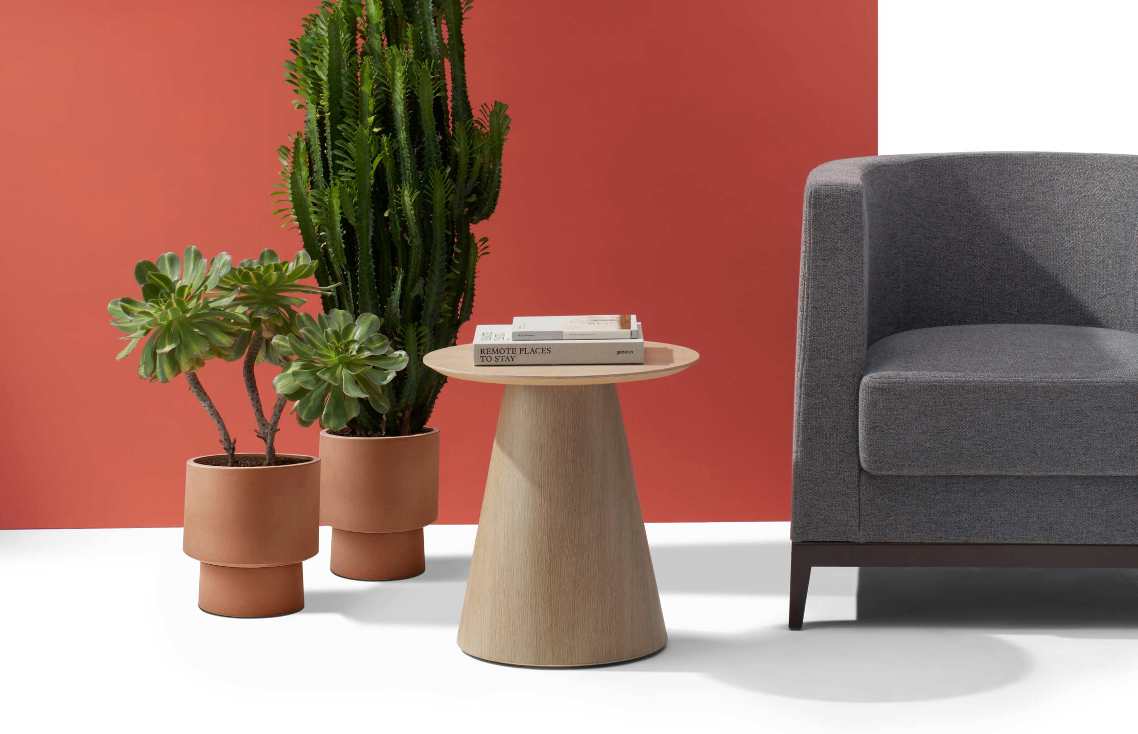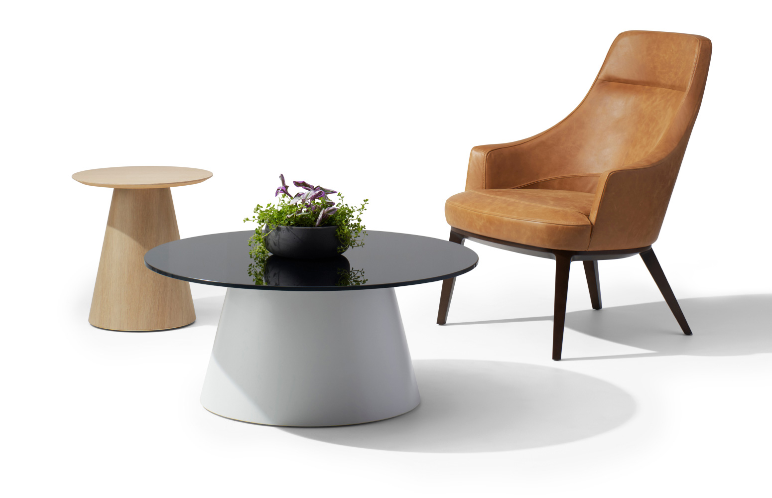 Simplicity meets sophistication with our Wane Occasional Tables. Side and coffee tables feature a distinctively tapered base that creates a strikingly bold silhouette. Pair the veneer base with a wide variety of top surface options, including painted glass, wood, solid surface, and stone, to make a dramatic visual statement or create a more subdued aesthetic that complements the environment.